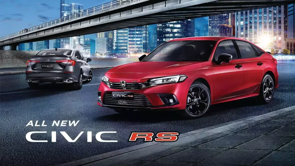 Saatnya menjadi pusat perhatian dengan penampilan sporty All New Honda Civic RS yang didukung Full LED Headlight with LED DRL, Dual Exhaust Pipe Finisher dan 17″ Sporty Matte Black Alloy Wheels.